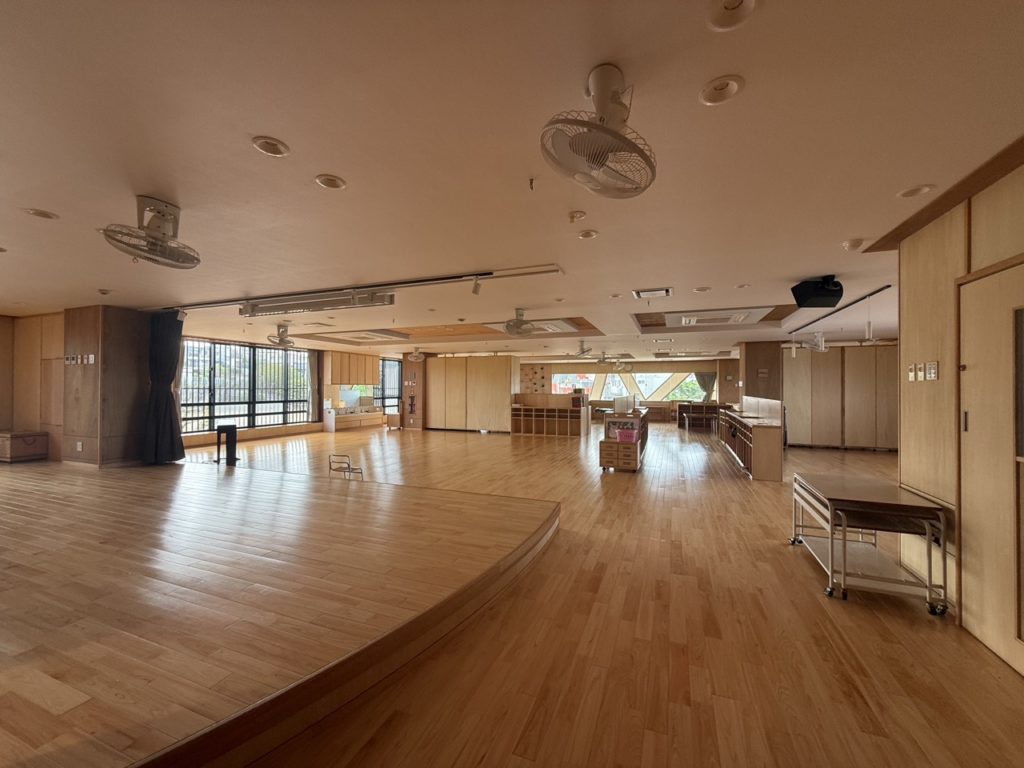 2Fには舞台もあります。家具を取っ払うとホールのような使い方も可能ですし、子どもたちが日常的に表現活動を披露するようなスペースにもできます。また、毎日催し物がある訳ではございませんので、その際には「遊びの舞台」として、