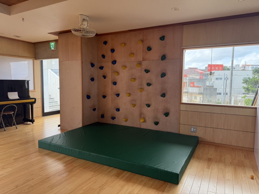 ホールとして利用もできますし、時期によって色々なコーナー遊びを展開したり、延長保育等の利用も想定しています。奥にはアクアリウムとして水槽を設置したり、秘密の小部屋もあるので子どもたちも大好きな場所となっております。