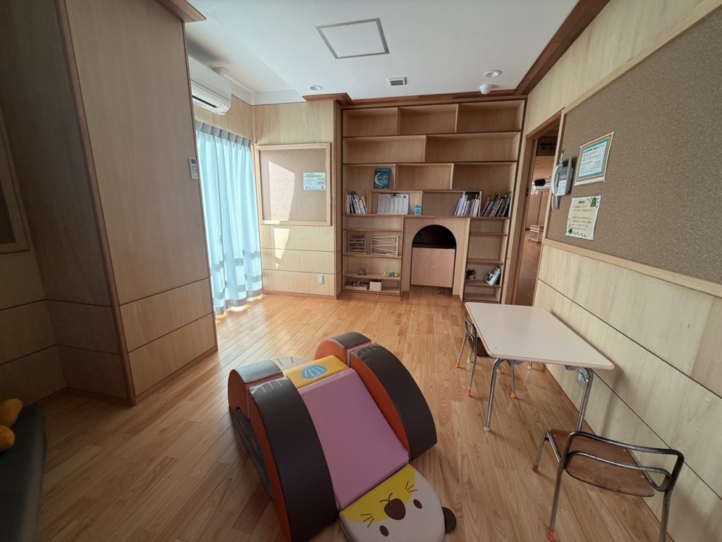 子育て支援室として、地域の方々がご利用いただけるスペースです。ゆんたくルームという名前の通り、担当の先生とのゆんたくも楽しめる空間になることを願っています。園に遊びに来られた際には、このお部屋だけでなく、ホールや保育室を覗いたり、絵本を見たり、園庭で遊ぶことも可能です。