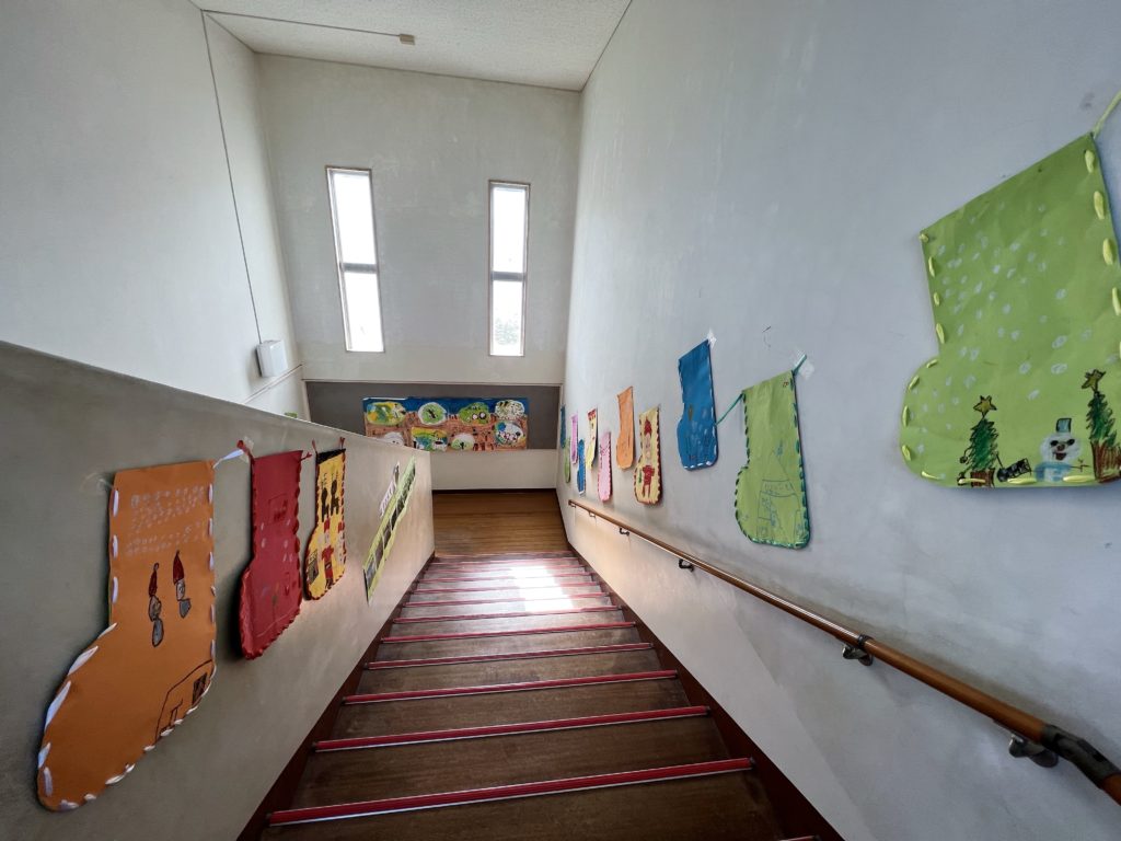 子どもたちの作品が階段や室内に増えて来ました。いつも季節ごとの制作や箱を使っての制作を考案している子どもたちと先生方は素敵ですね。表現において学ぶものや感じることも多種多様でしょうが、どの子も自分の表現が認められる気持ちを十分に味わって欲しいですね。